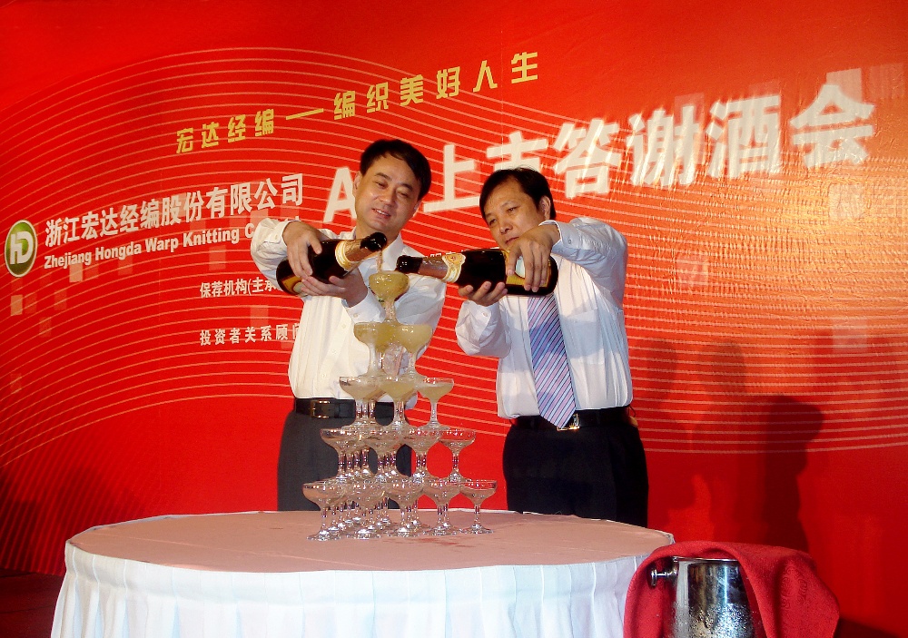 嘉興市人大常委會副主任(時任中共海寧市委書記沈利農)在“宏達經編”新股上市儀式上