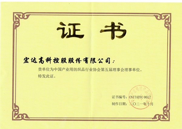 2021年10月20日,中國產業用紡織品行業協會(以下簡稱“中產協”)第五次會員代表大會暨協會成立20周年紀念活動在北京召開。會議圍繞換屆選舉、20周年紀念等主題,共話產業用紡織品行業發展方向。會上,宏達高科入選中國產業用紡織品協會第五屆理事會理事單位。