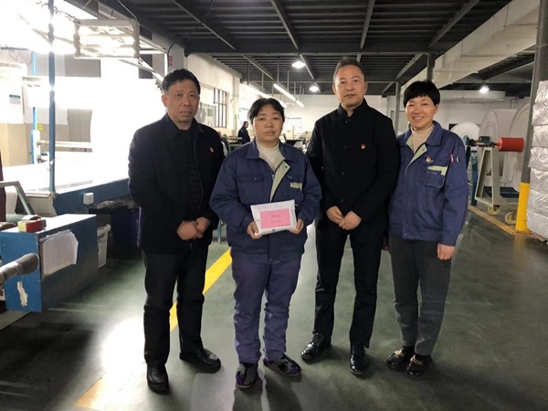 2021年12月10日下午,公司總經(jīng)理許建舟、工會(huì)主席潘建華來到質(zhì)保部,為質(zhì)保部員工孫秀芬送上慰問金。