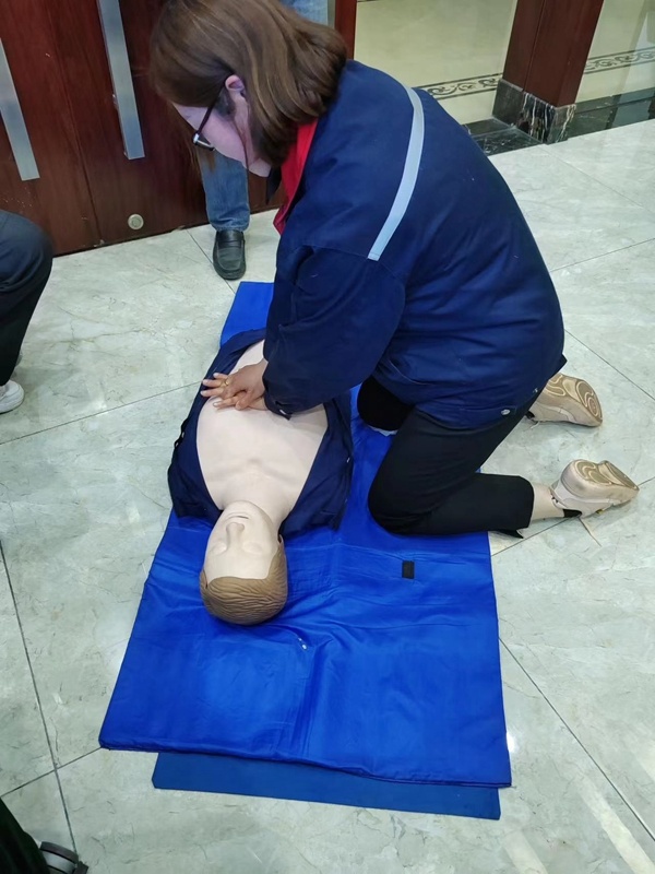 在心肺復蘇實操課上,學員們積極性非常高,爭先恐后參與演練,利用模擬人對暈倒者從判斷意識、呼吸情況,再對模擬人進行胸外心臟按壓、口對口人工呼吸、AED除顫等一些列心肺復蘇操作。課上,老師對學員的不正確的操作手法及時進行糾正。
