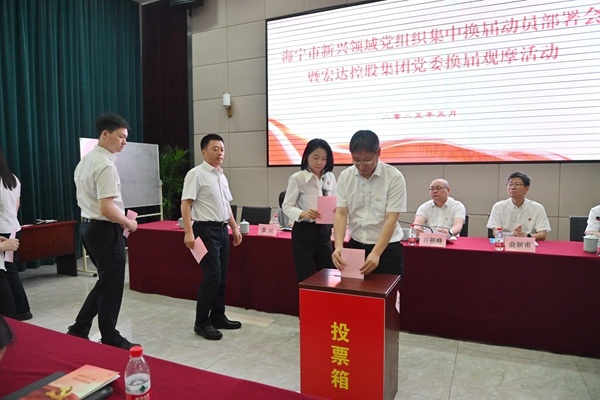 5月30日上午,宏達集團黨委換屆選舉大會順利召開。會議聽取審議了第六屆委員會工作報告,選舉產(chǎn)生第七屆黨委委員。海寧市委副書記、社會工作部部長呂忠飛,市委社會工作部副部長、兩新工委副書記張紅,市派黨建指導(dǎo)員俞新甫、許村鎮(zhèn)黨委書記許新鋒,許村鎮(zhèn)黨委副書記楊路錢、各鎮(zhèn)街道分管領(lǐng)導(dǎo)等應(yīng)邀出席會議,集團黨委全體黨員及集團下屬公司支部負責人及關(guān)聯(lián)單位共計100余人參加會議。
