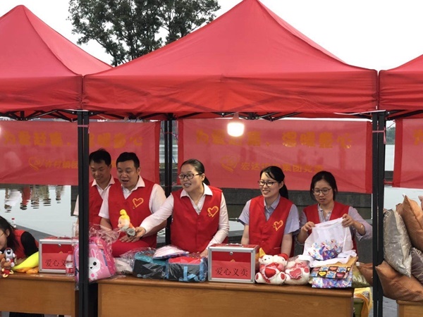 2019年5月31日傍晚,海寧市許村鎮(zhèn)許村社區(qū)聯(lián)合共建單位黨組織、愛心企業(yè)、社會組織等多方力量,在許村龍渡湖廣場開展了一場以“為愛趕集,溫暖童心”為主題的愛心公益主題活動,宏達控股集團黨委作為共建單位,派出了10余名黨員參與活動。