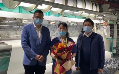 4月29日,許村鎮(zhèn)工會主席俞建強來到宏達(dá)高科慰問浙江省勞模趙巧娟。