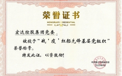 近日,中共宏達控股集團黨委被中共嘉興市委組織部評為“戰‘疫’紅船先鋒基層..